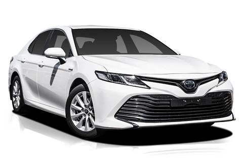 Andrew drives a White Toyota Camry Hybrid 2020
